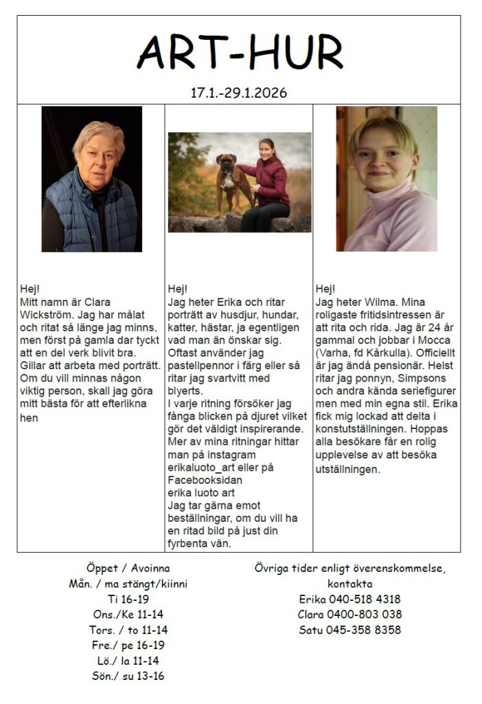 Utställningen är öppen för allmänheten under de två sista veckorna i februari 2026. I utställningen deltar drygt 50 KOMBI-elever, som undervisas av 8 olika lärare, med sina sammanlagt över 100 alster!